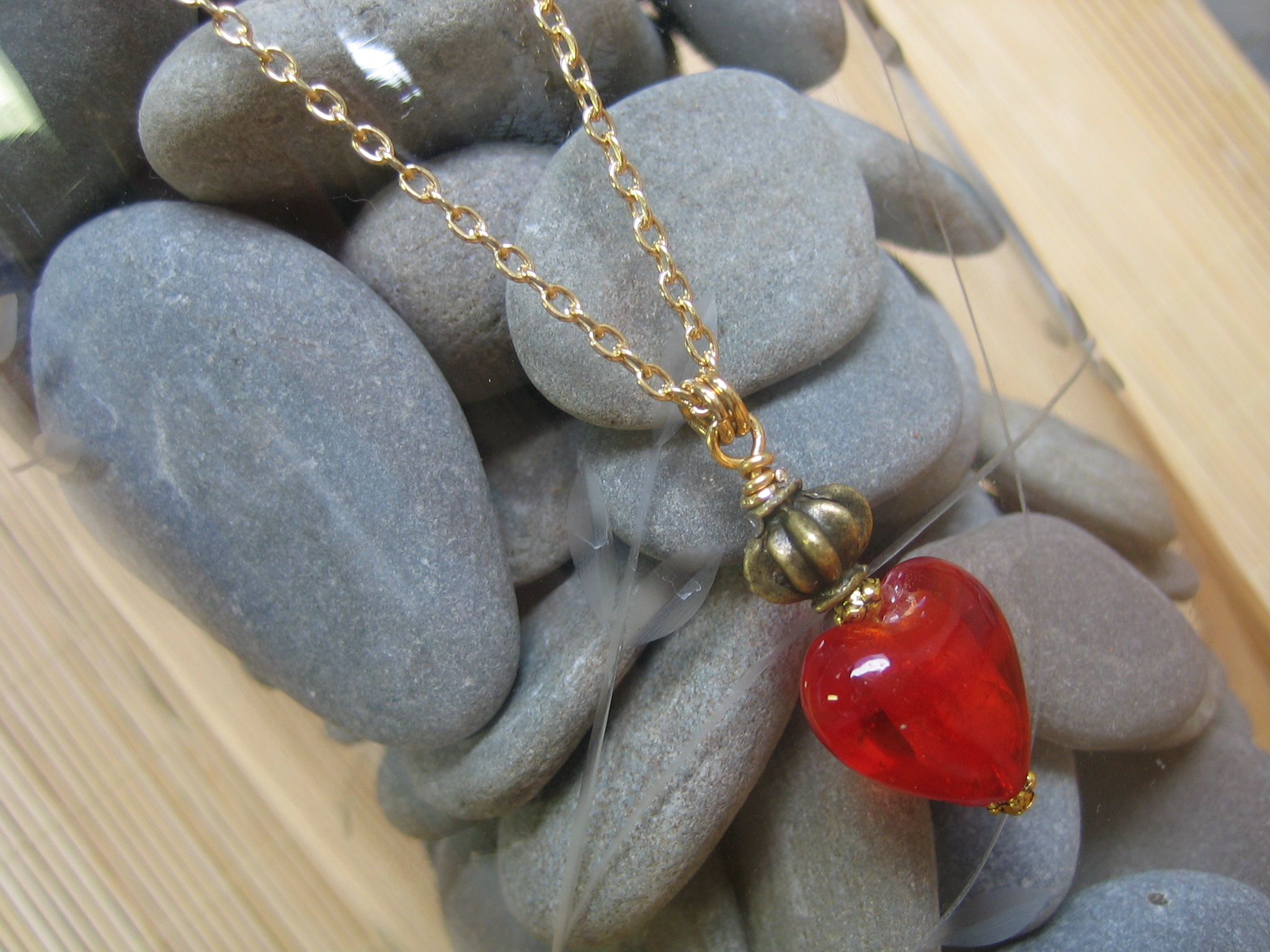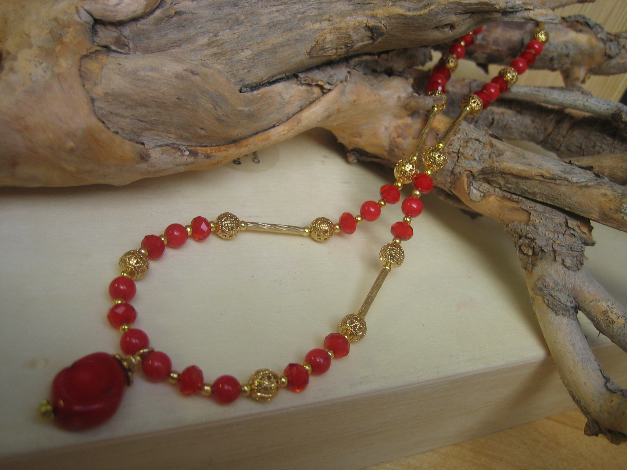 I had a mobile jewellery sale scheduled for last Friday back at my former workplace, and I had been asked for something bright red with gold accents – either a necklace or a bracelet – that my pharmacist could wear with her new red pants.