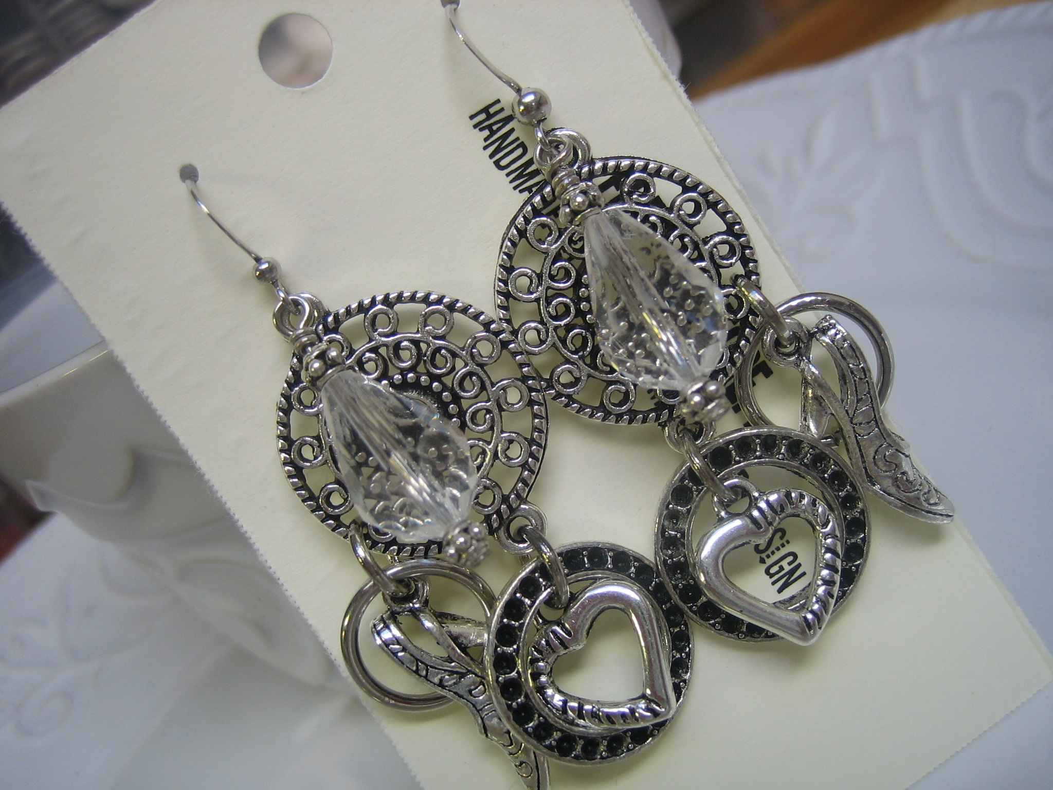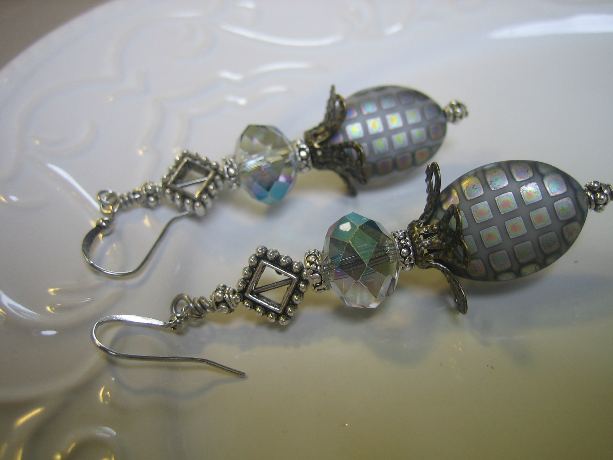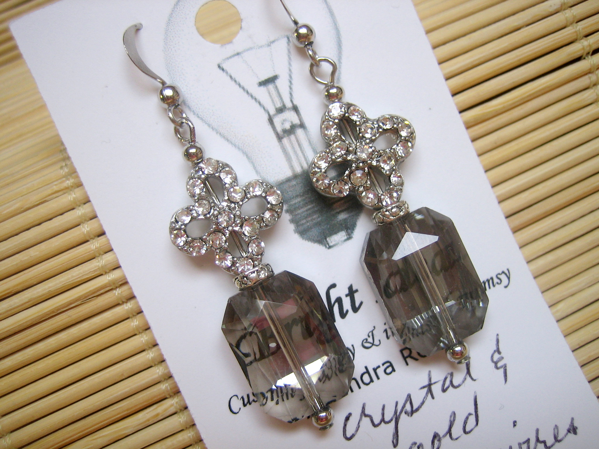 crystal and gunmetal earrings