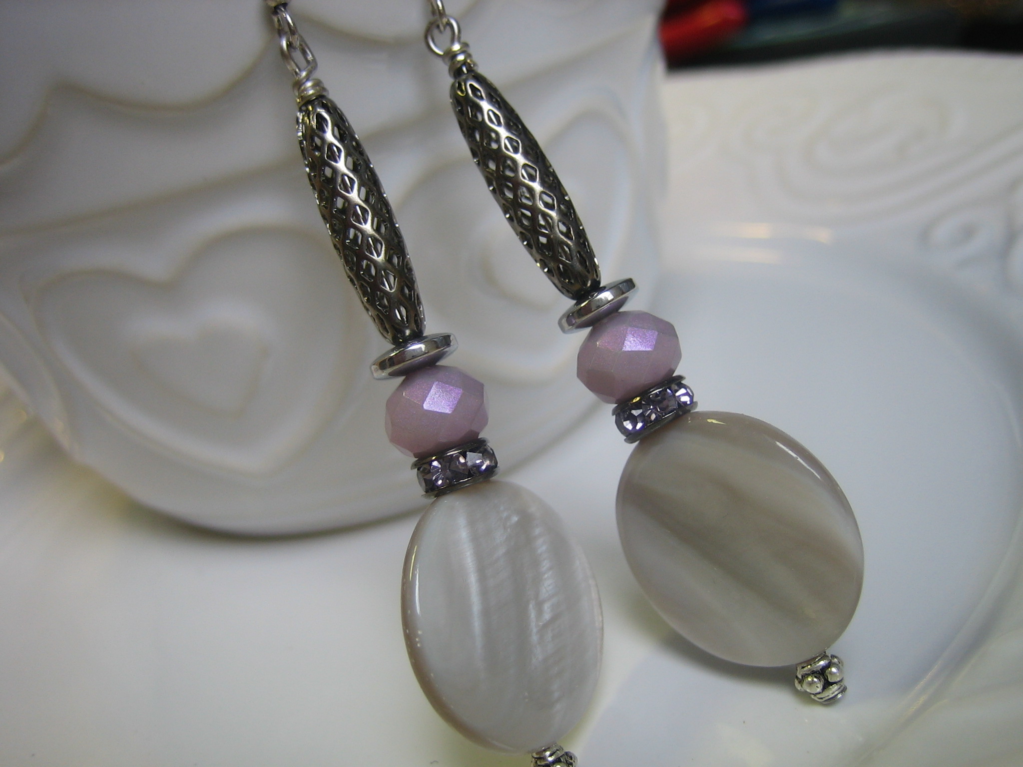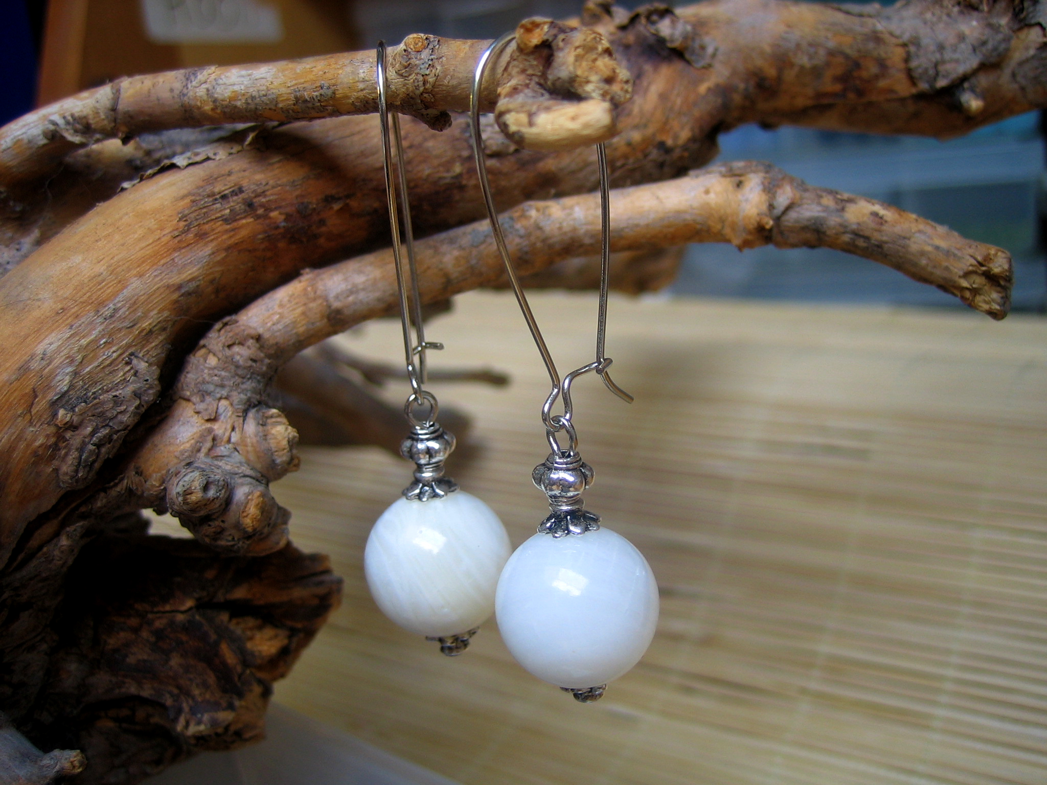 white agate earrings with white gold plated earwires