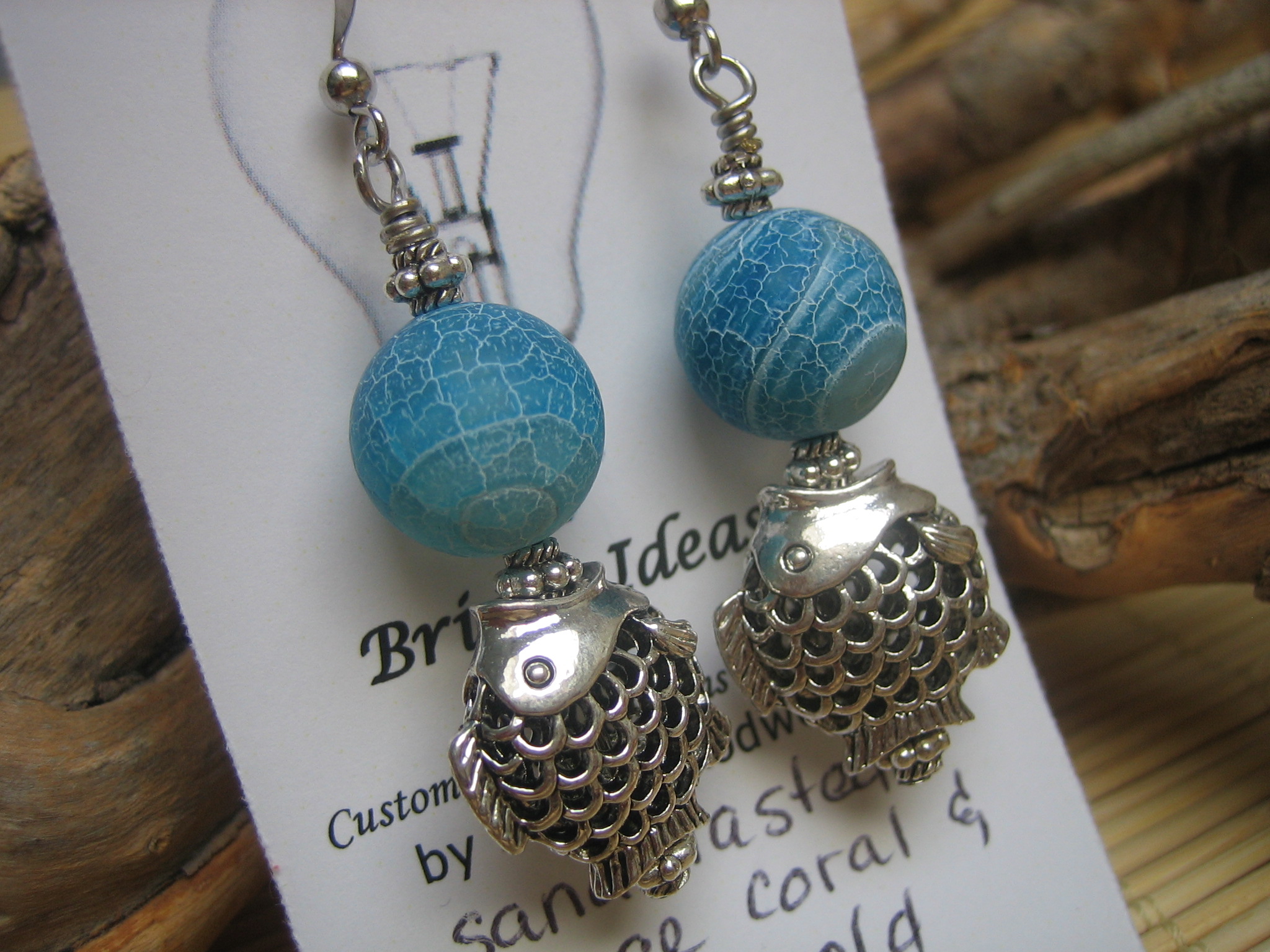 brass, glass, sandblasted fire agate and antiqued brass earwires