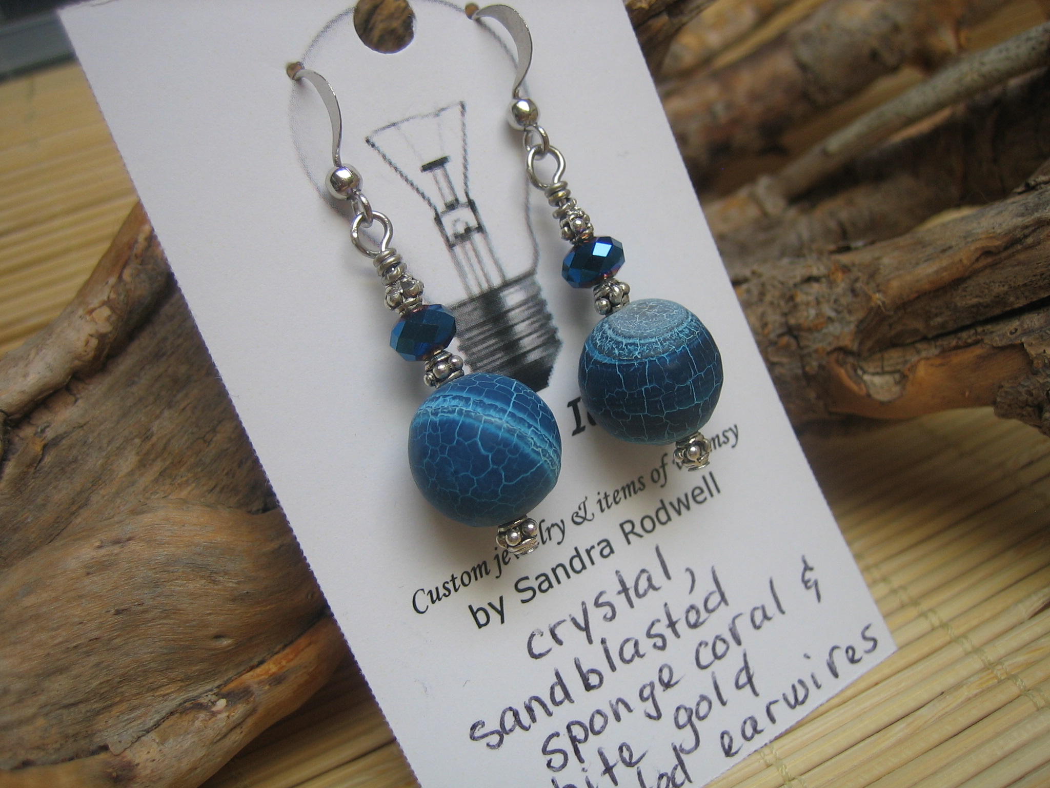sandblasted sponge coral, crystal earrings with white gold plated earwires