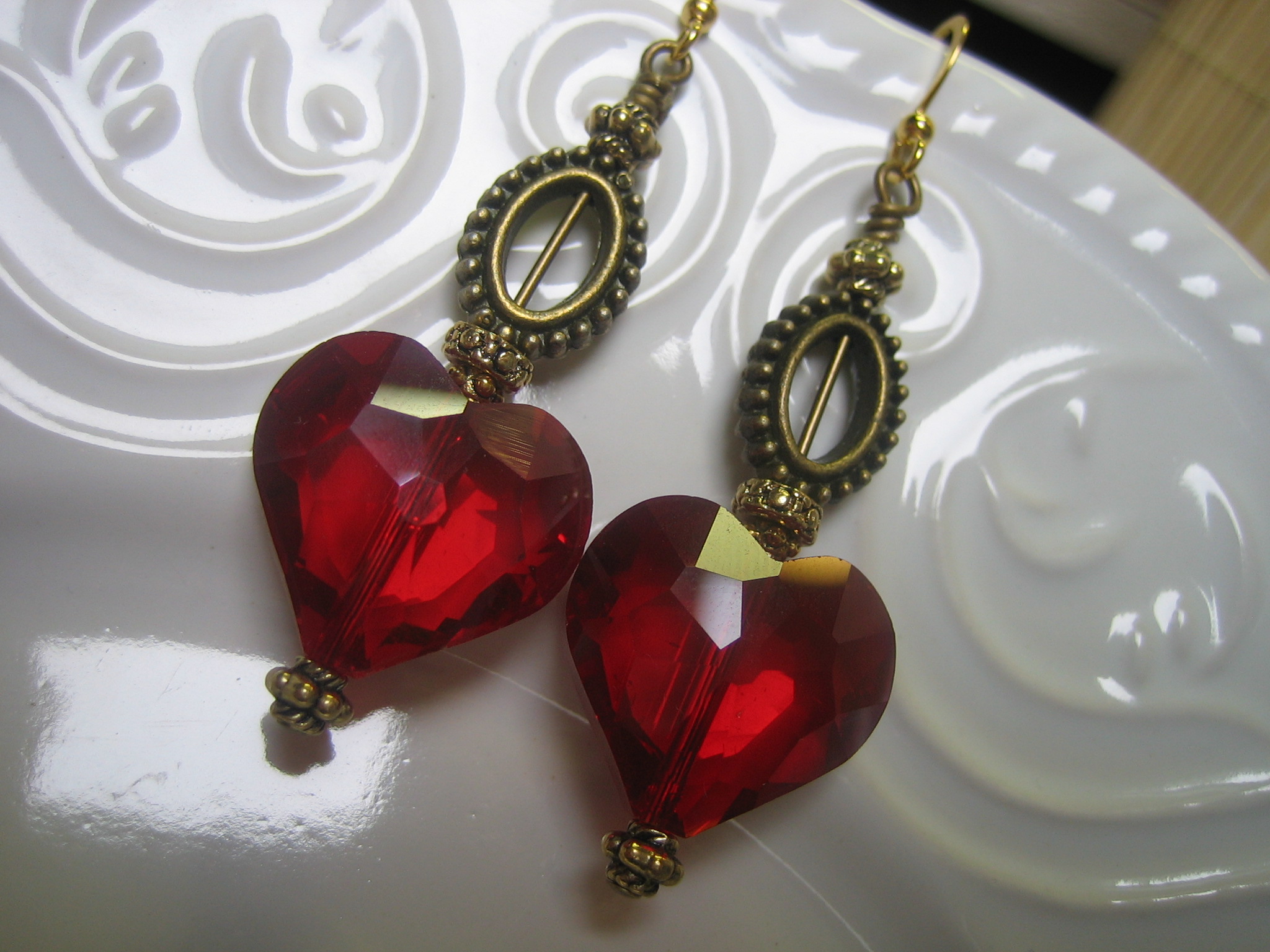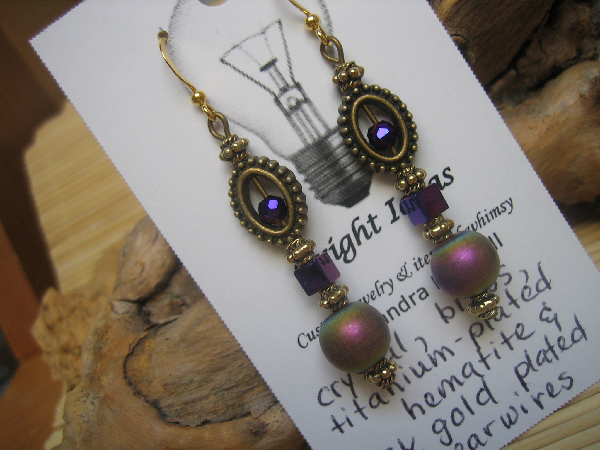 crystal, glass and brass earrings with antiqued brass earwires