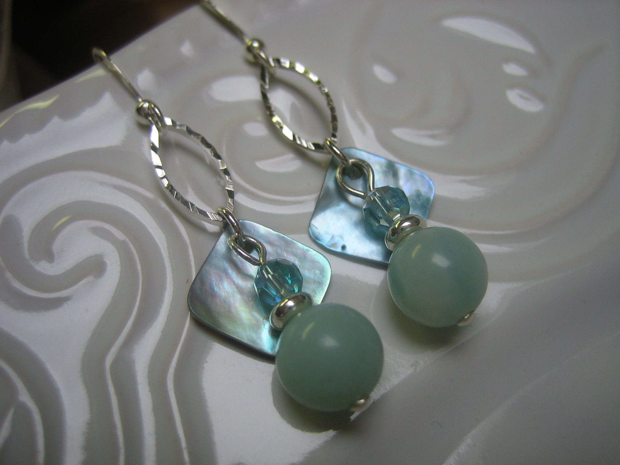 mother-of-pearl, sterling silver plate and white gold plated earwires