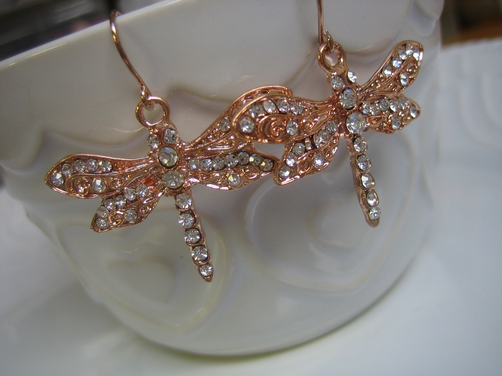 rose gold and crystal dragonfly earrings