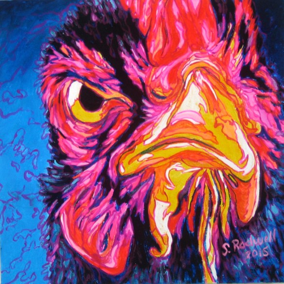 “Some Pig” acrylic on canvas, 12″ x 12″, by Sandra Rodwell, 2015 $225